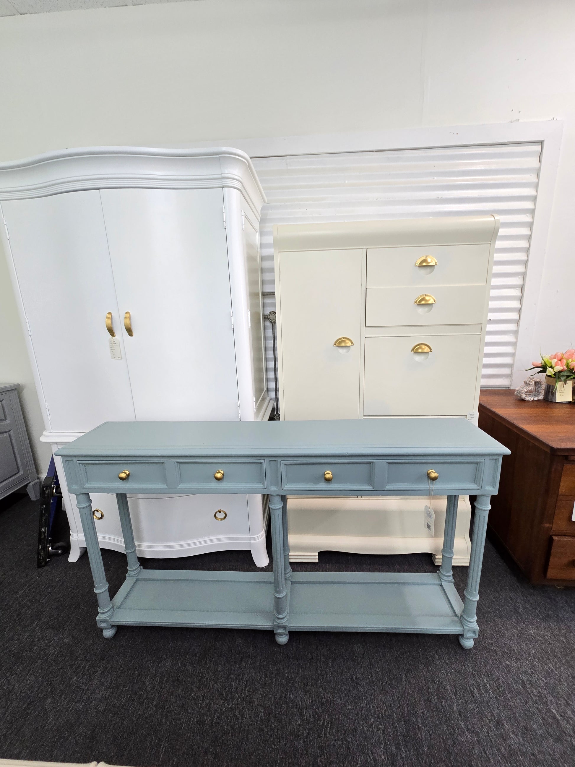 2 drawers teal sofa table