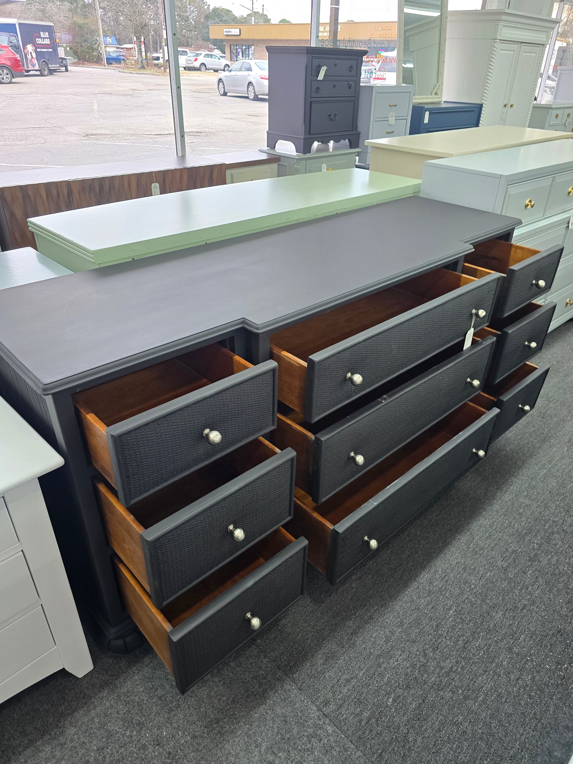 Blue Lacquered 10 drawers dresser