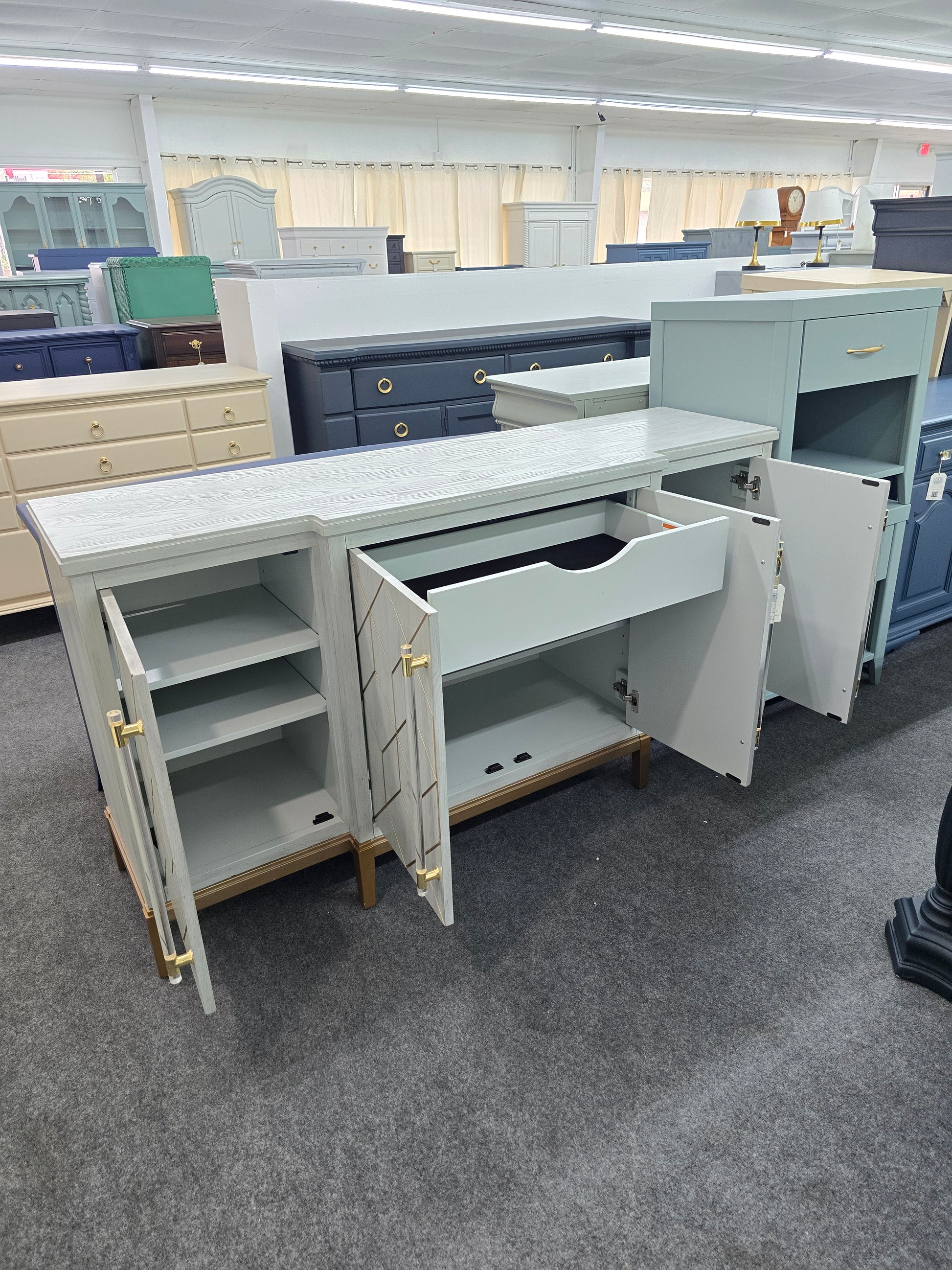 Gorgeous green washed and gold credenza