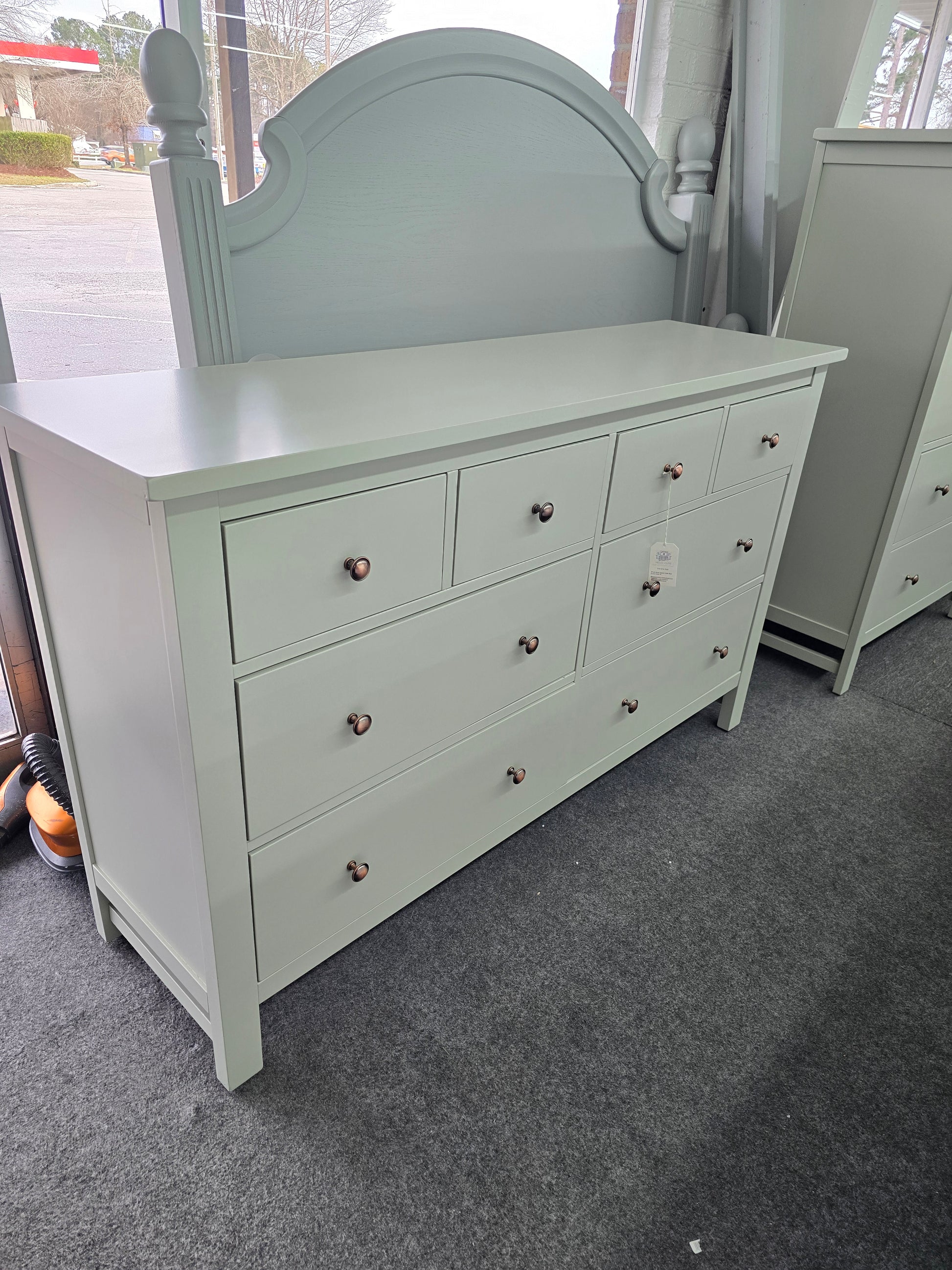 Green lacquered 8 drawers dresser