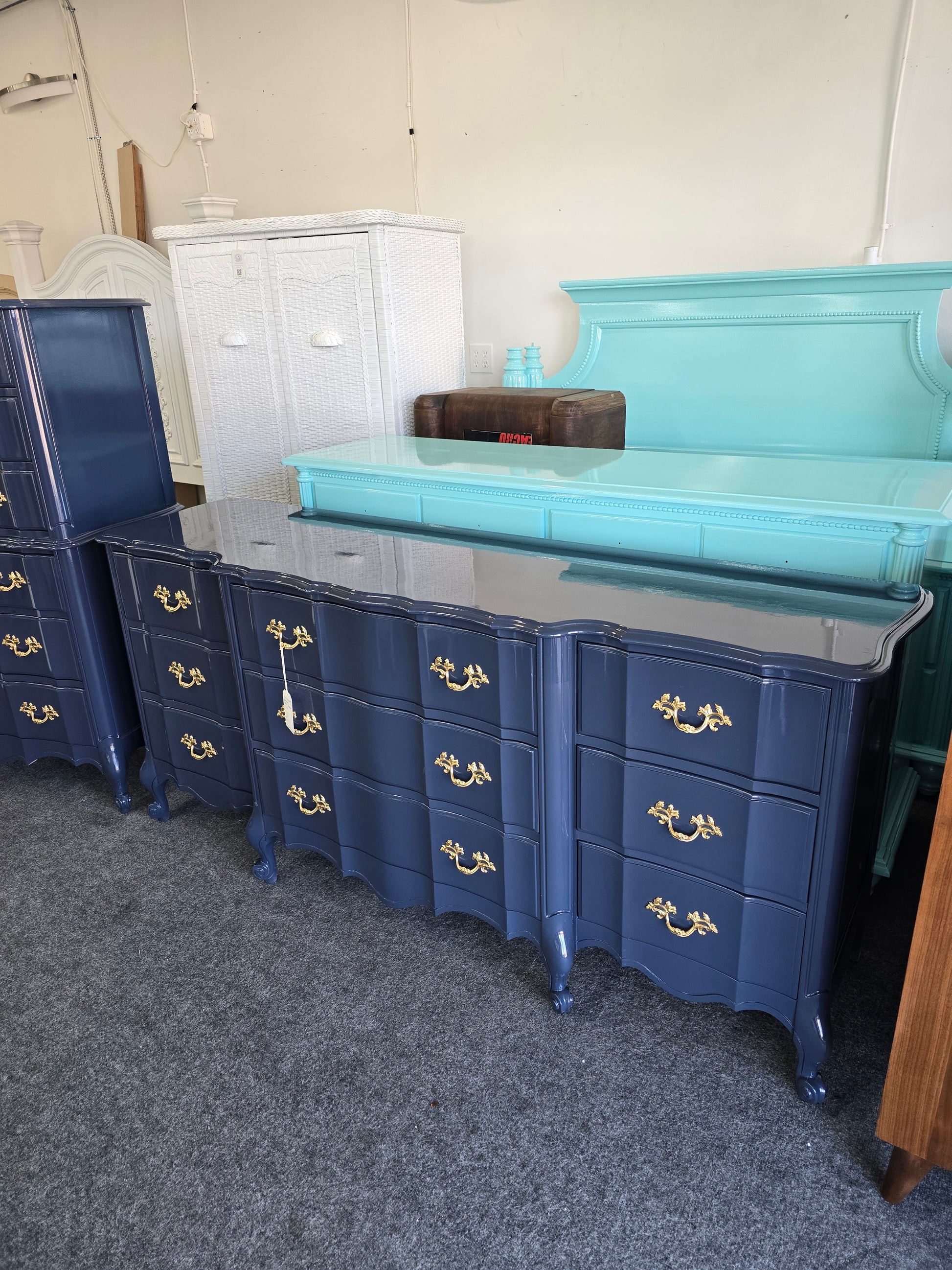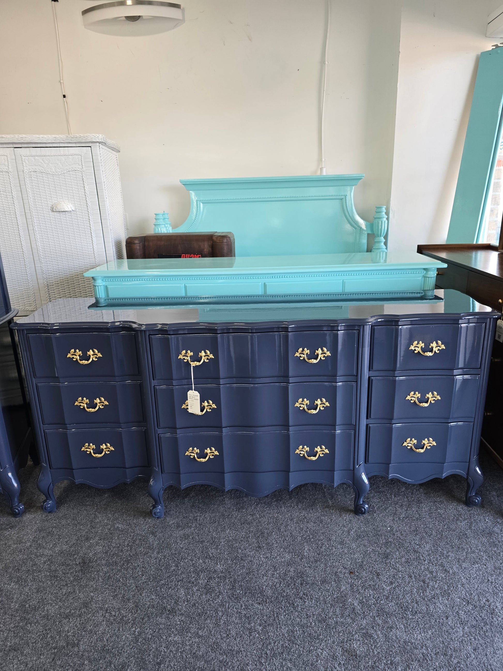 Lacquered navy French provincial dresser