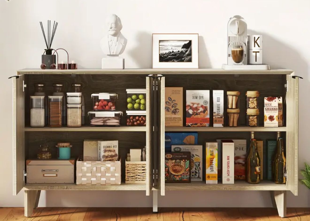 4 Door Storage Side Cabinet with Adjustable Shelves