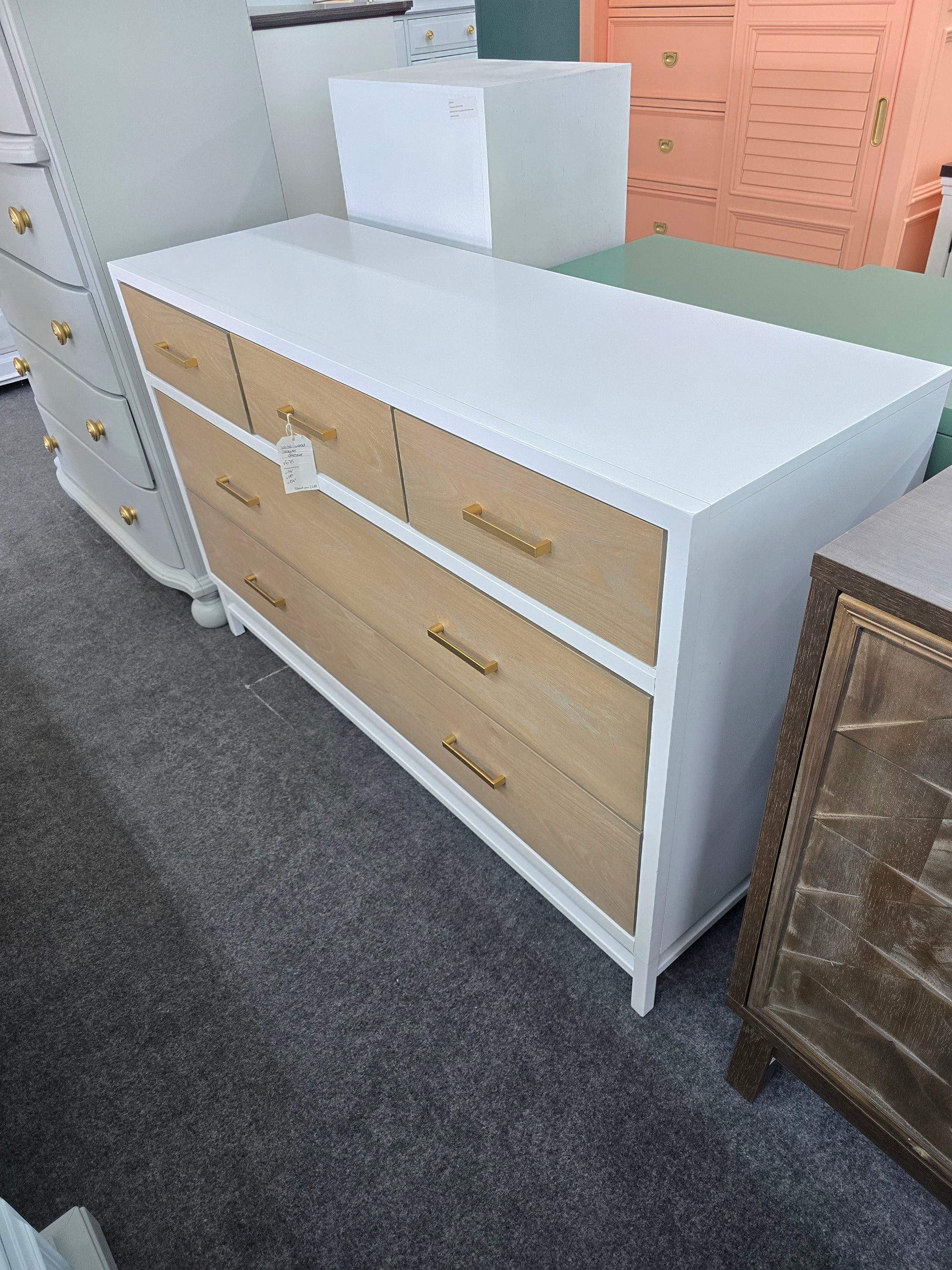 Smartstuff white lacquered dresser and natural wood drawers