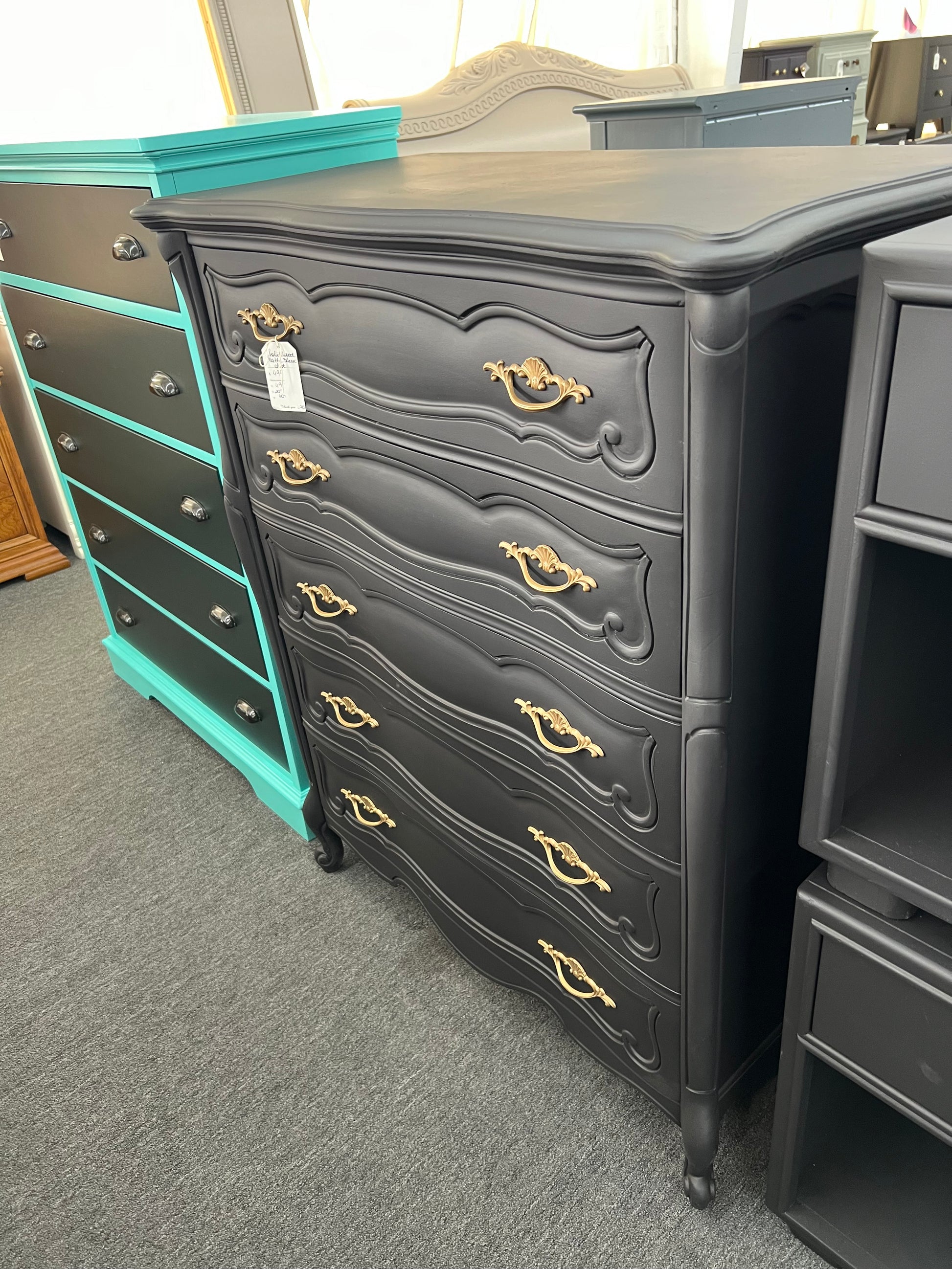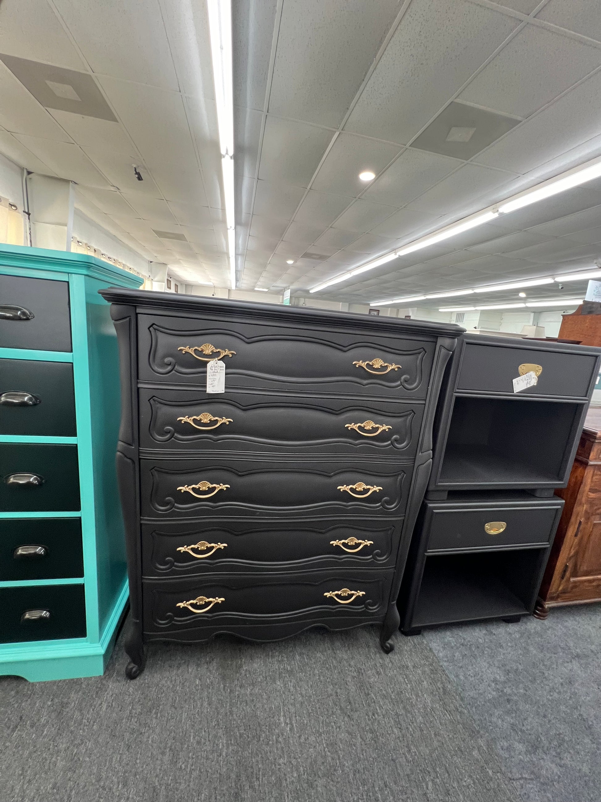 Solid wood matte black chest