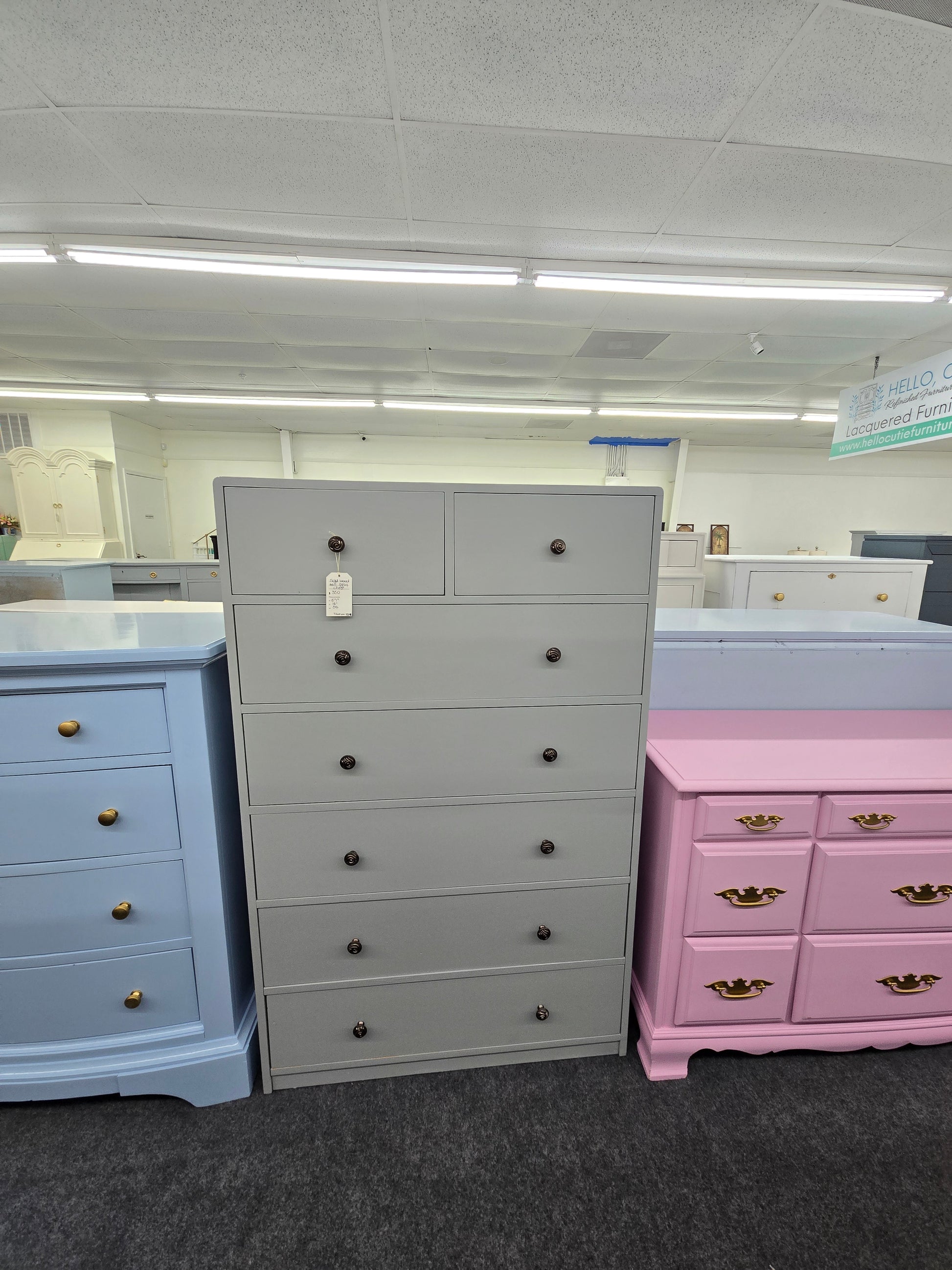 Beautiful gray dresser 6 drawers 1 door rattan drawers