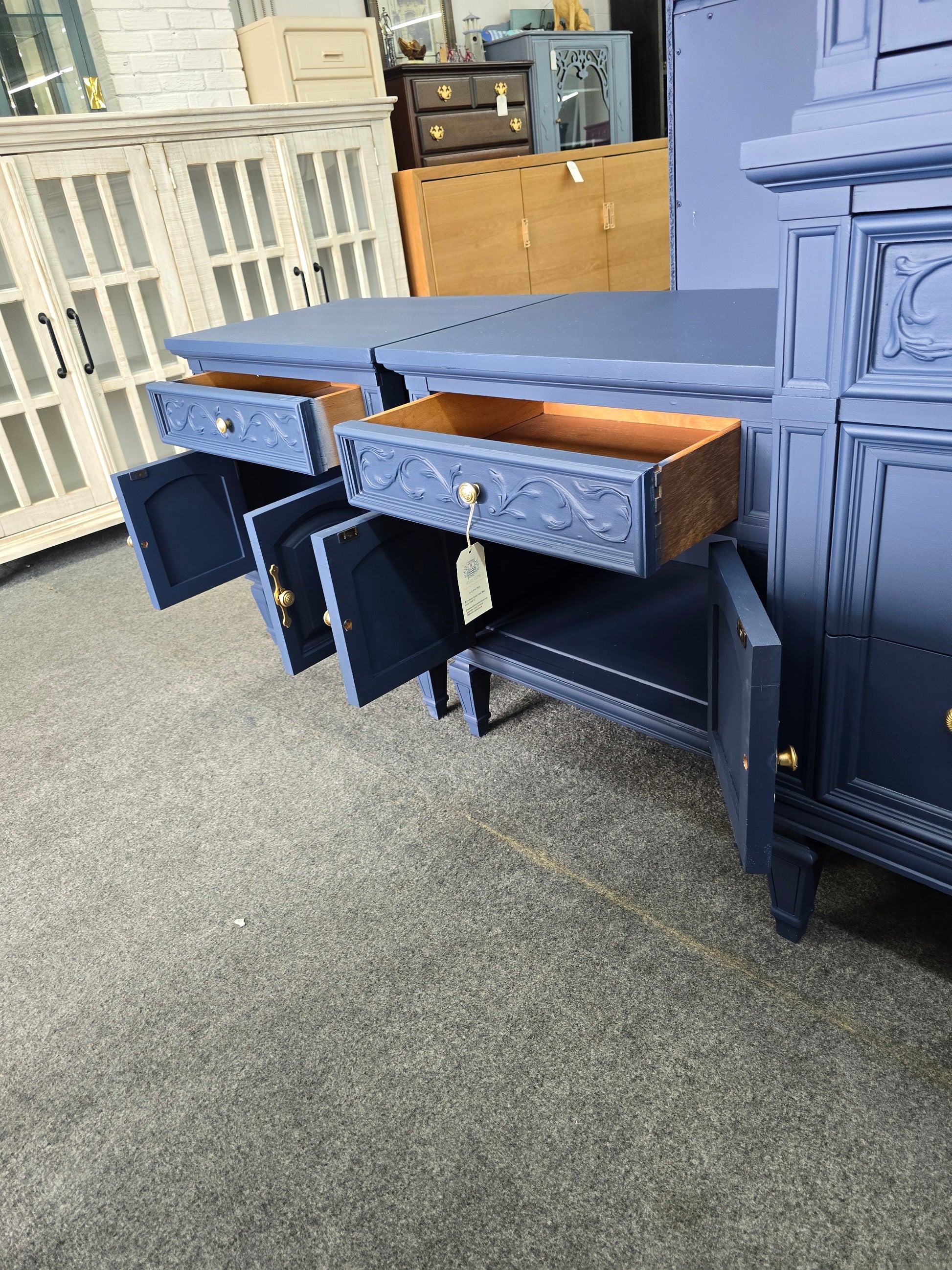 Legacy traditions navy blue pair of vintage nightstands