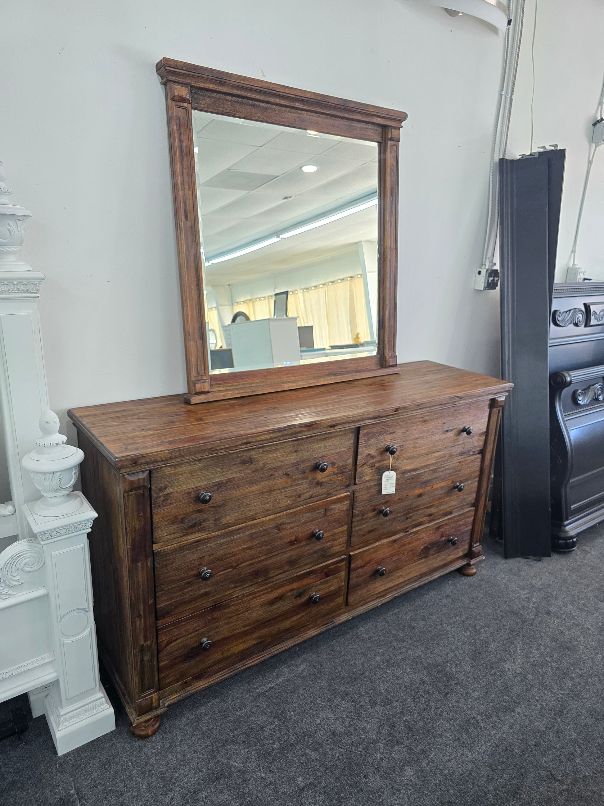 Rustic 6 drawers dresser with mirror